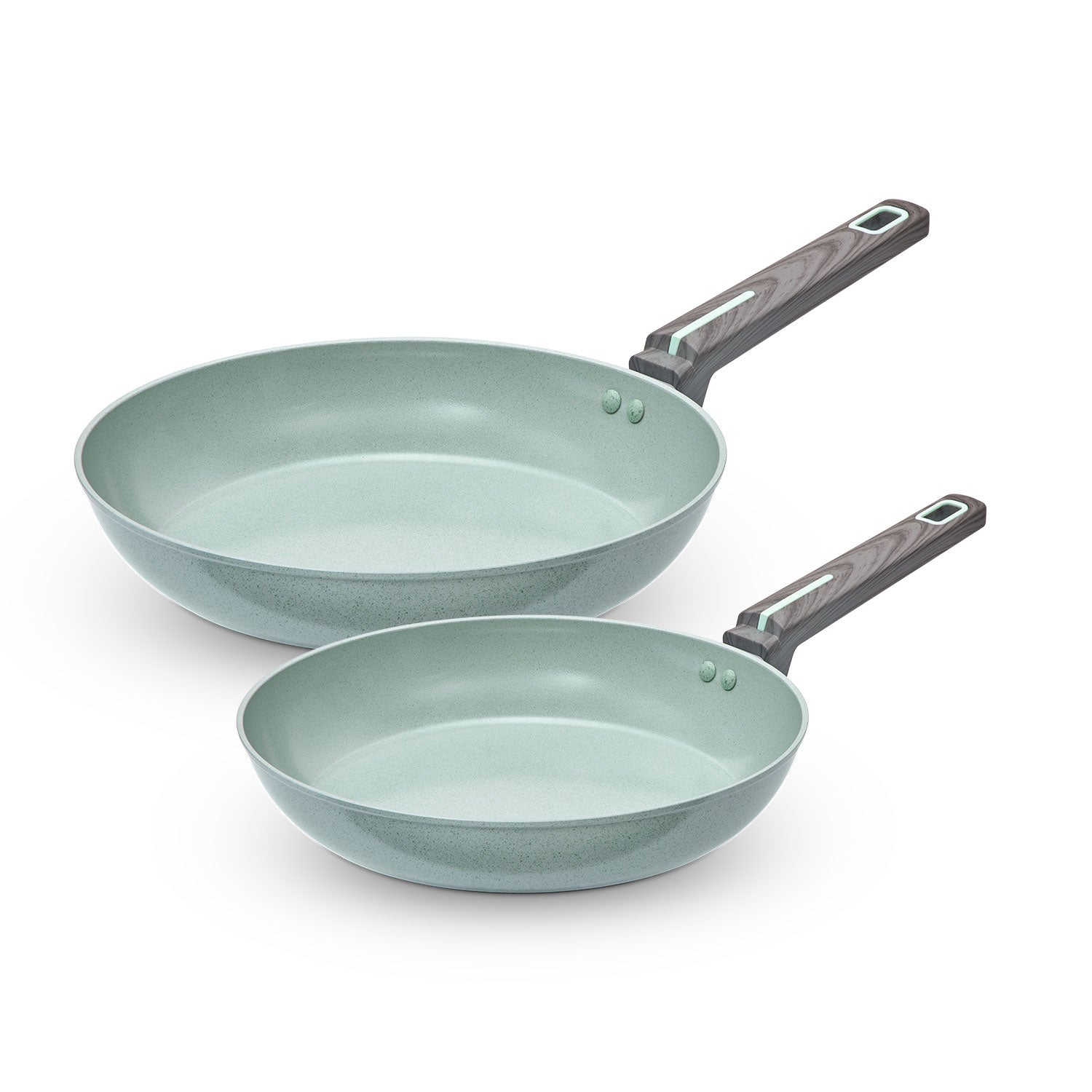 Jade Cook Essentials cuenta con un recubrimiento de 2 capas de antiadherente cerámico 100% libres de tóxicos para cocinar de manera saludable para tu familia.
